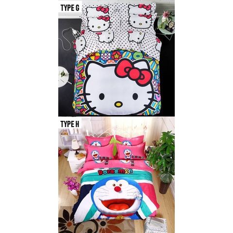 FULL SET CARTOON PREMIUM QUEEN / SINGLE BEDSHEET CADAR MURAH READY STOCK (8 COLOURS++)